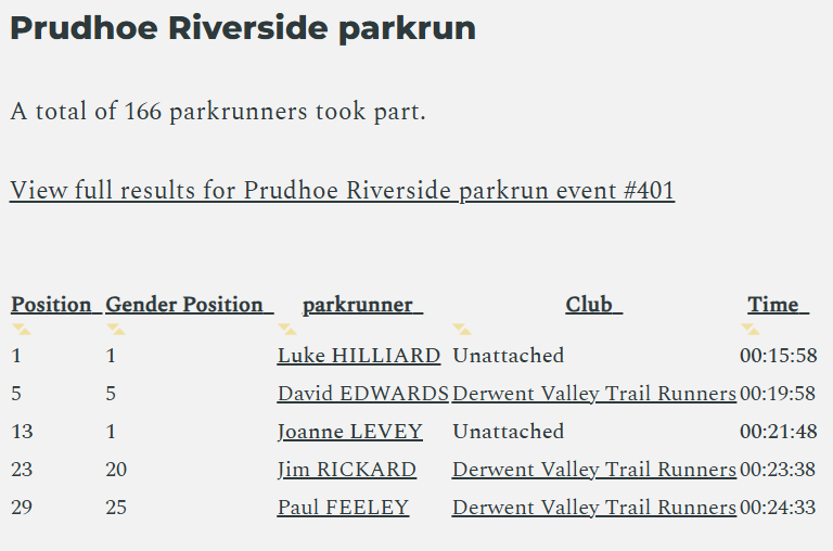 Congratulations to Dave Edwards and Jim Rickard for achieving PB's at Prudhoe parkrun. Jonathon Parker also finished second at Prudhoe in a cracking time of 18:37 ...
