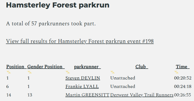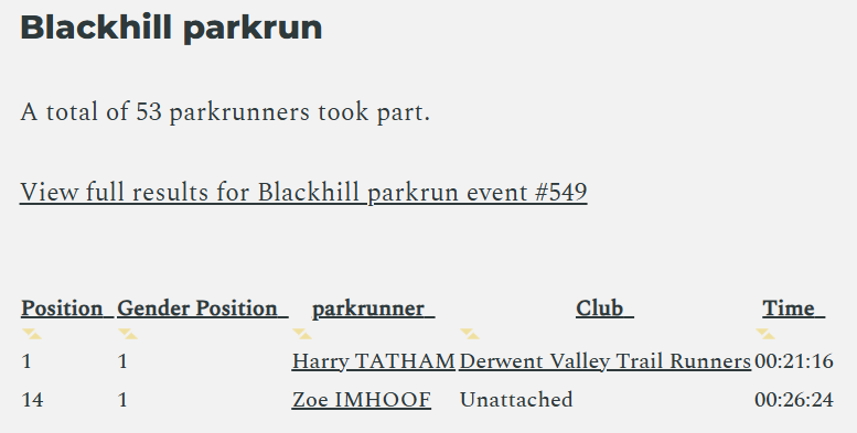 Saturday 21st February 2026 - Parkrun results