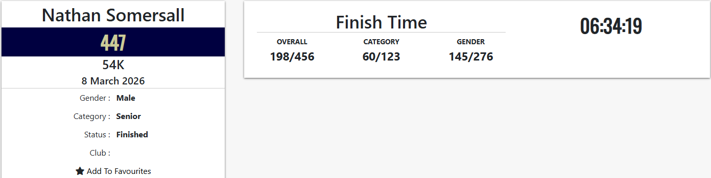 Congratulations to Tom King who completed the race in 3hrs 38mins finishing in 77th position from a field of 89 runners.