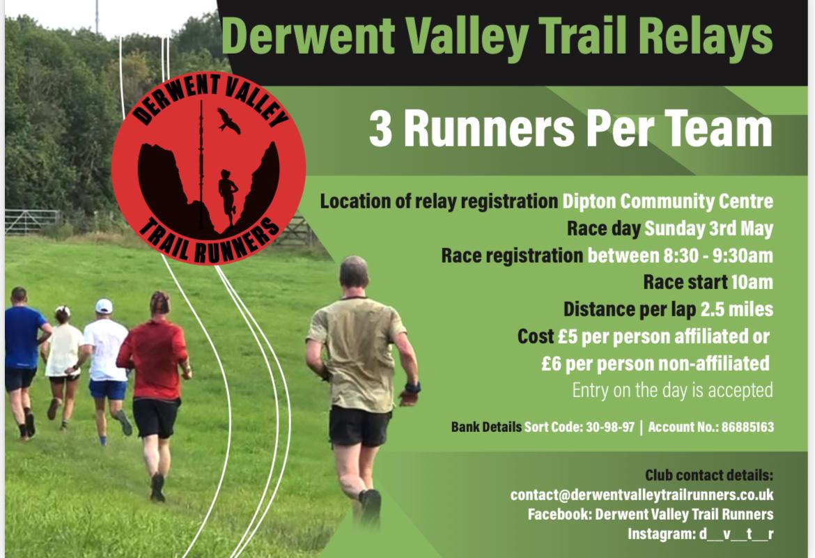 Sunday 03rd May 2026 is our very own Derwent Valley Trail Relays event. Click the link for details: DVTR Relay Event