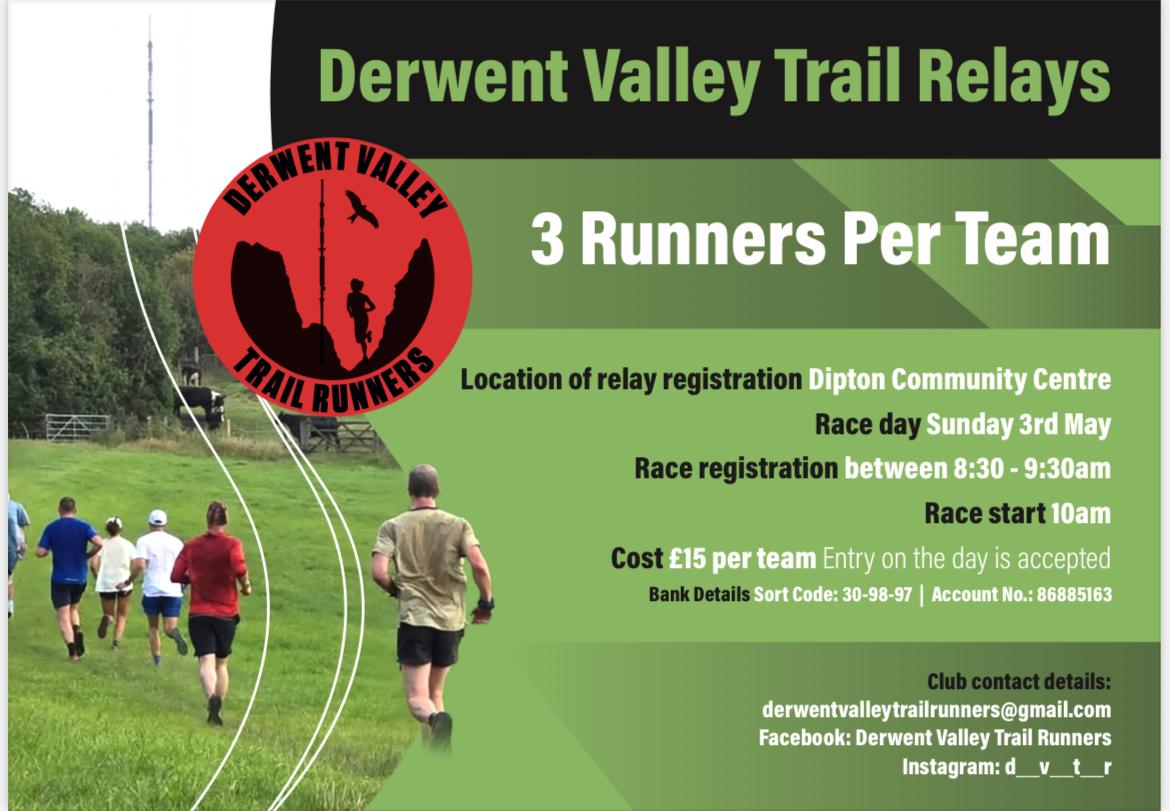 NEW for 2026, Derwent Valley Trail Runners are excited to announce our very first 'Derwent Valley Trail Relays'. Organised and hosted by our club members these relays will take place on Sunday 03rd May 2026 starting at 10am. Registration will take place between 8.30am - 9.30am at the Dipton Jubilee Centre, Front Street Street, Dipton, DH99DR.